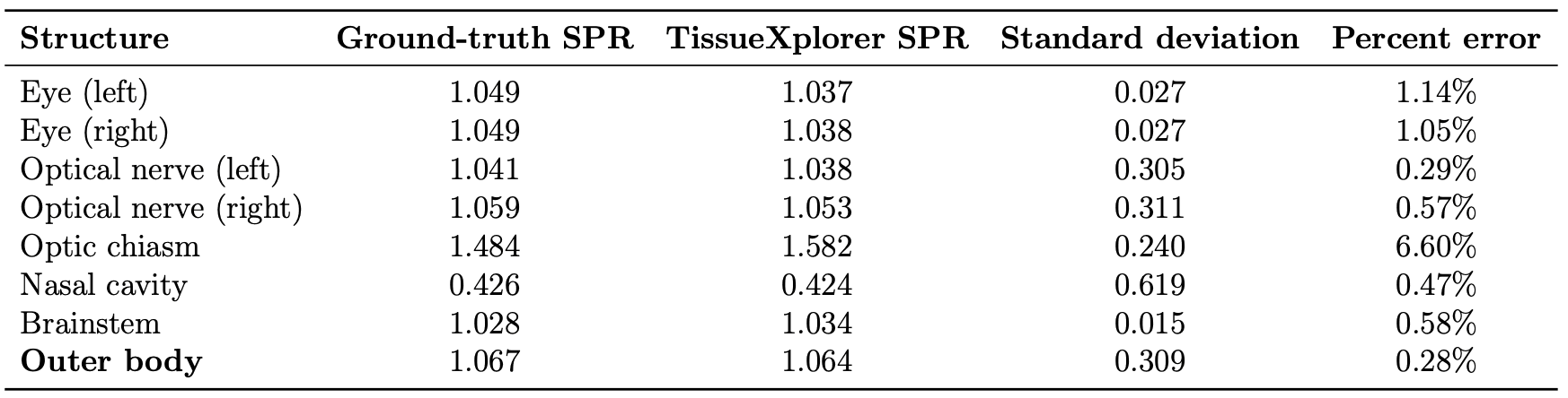 • Mean SPR error with TissueXplorer: 0.28%